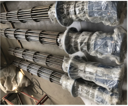 ①熔鹽罐電加熱器:是整個(gè)供熱系統(tǒng)的關(guān)鍵設(shè)備,熔鹽在此不斷獲得熱能,由它提供裝置所需的高溫?zé)嵩?,輸出功率根?jù)用戶要求確定。電加熱器過流材質(zhì)316L, 管板法蘭和接線盒碳鋼 ;表面負(fù)荷3.5w/cm2. 。 生產(chǎn)標(biāo)準(zhǔn):JB/T2379-2016,設(shè)計(jì)壓力:0.66MPa ,工作溫度:550℃,工作電壓:380V三相 50Hz △形接法,電熱管加熱密度:3.5W/cm2,電加熱器防爆等級(jí)dIICT4,防護(hù)等級(jí)IP65。